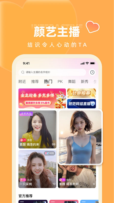 魅影直播真人互动视频直播网站,支持数万人同时在线视频聊天、在线K歌跳舞、视频交友。还有着很多趣味好玩儿的直播间互动小游戏,使你在收看直播间全过程中还能享有大量快乐。